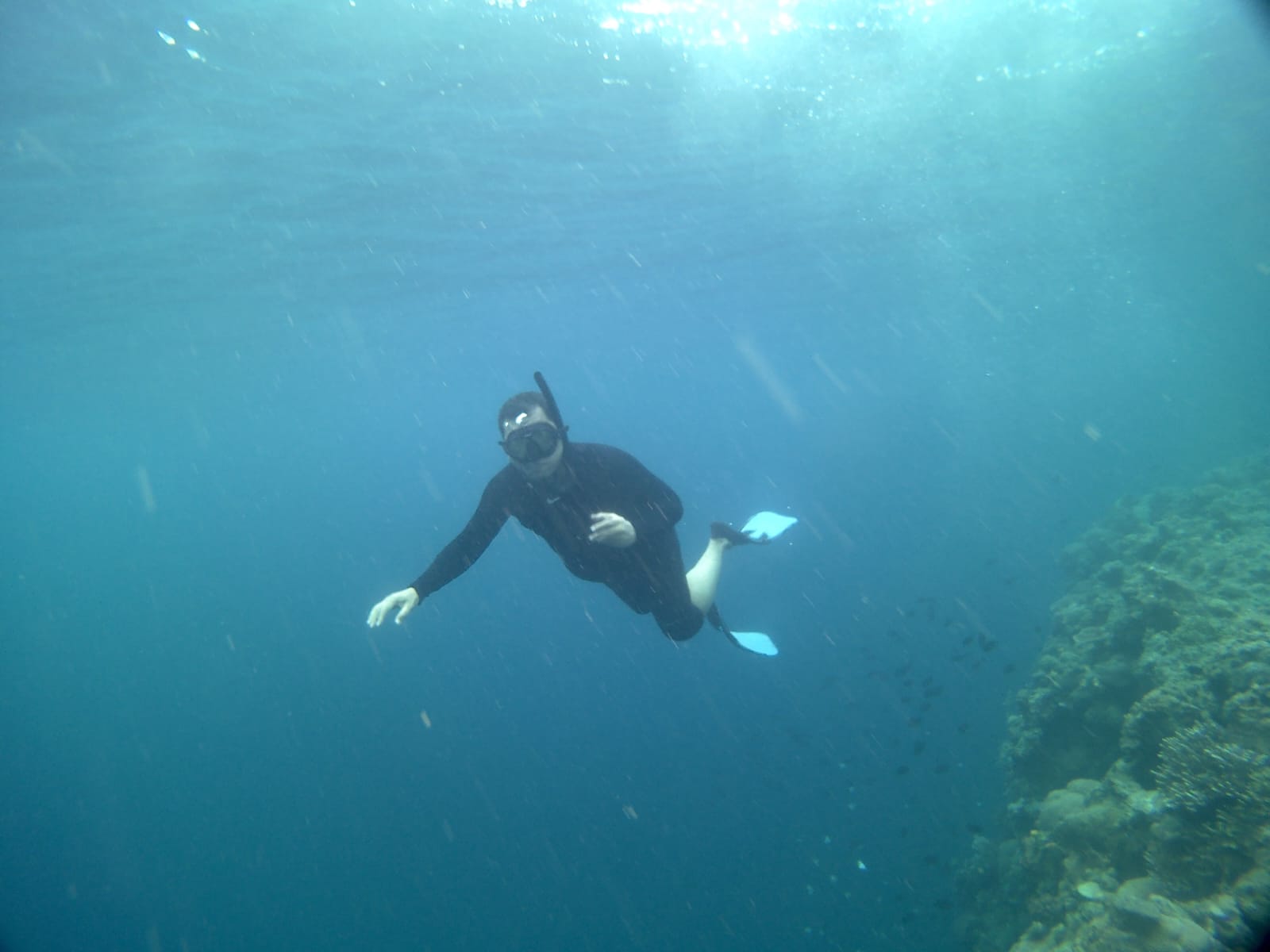 Pria bernama lengkap Dr. Hayu Prabowo berkujung di bunaken tak sekedar mengamati. Ia ikut menikmati hari liburnya bersama Manggis Travel selama sehari.